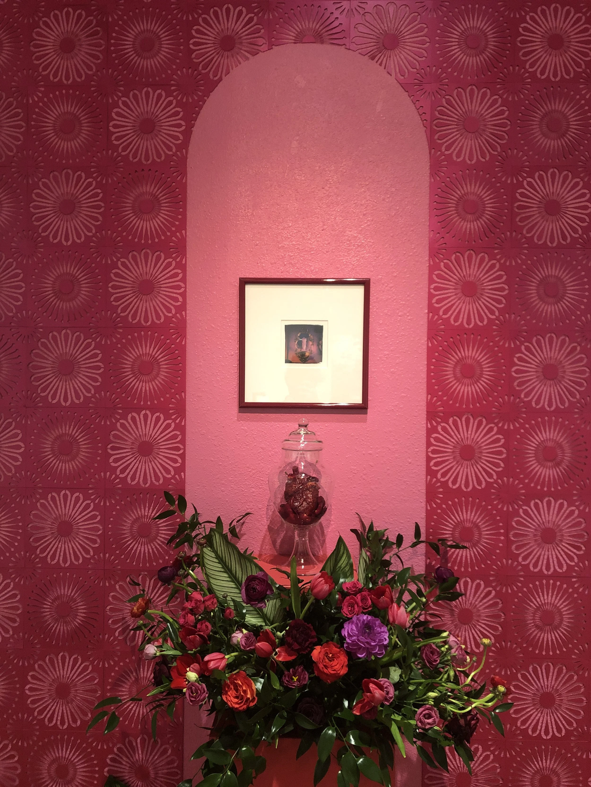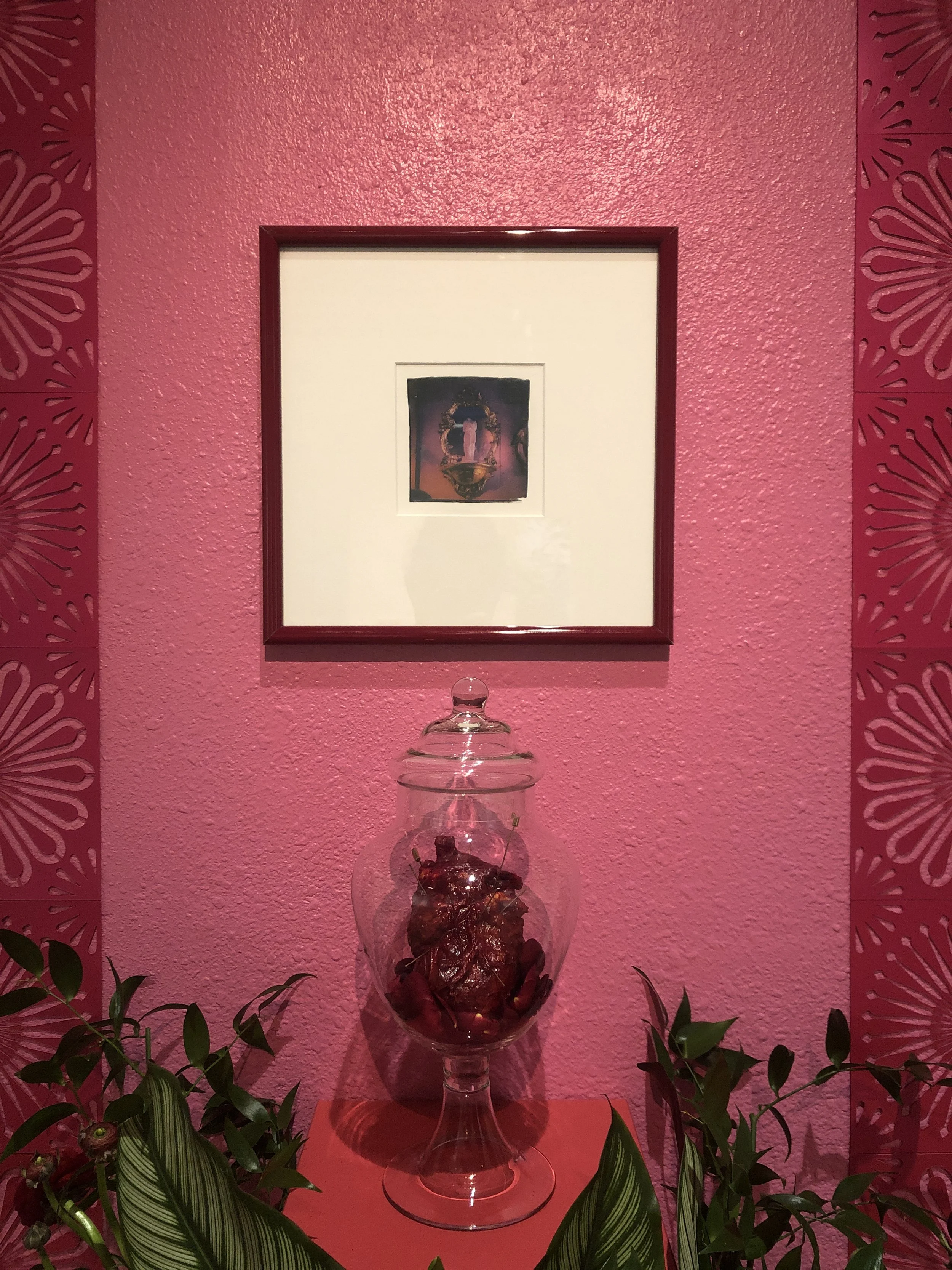 Created in 2020, during the Covid-19 “lock-down,” while the globe was shuttered indoors, loss of life great, and commerce based on necessities for life and living. This ofrenda installation explored altar-making with limited means and access to paper, repurposed materials, and on-hand supplies only. The artist explores gestures in space-making and crafting and questions what is needed to create sacred space.